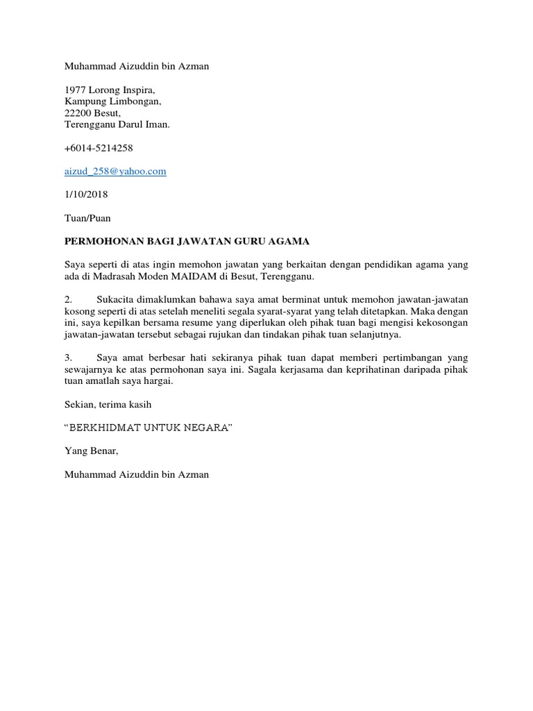 Cover Letter Dalam Bahasa Melayu - Karena cover letter berfungsi sebagai pembuka surat, jadi ibarat seseorang yang akan bertamu pun, kita perlu untuk memberi salam terlebih dahulu jika akan masuk ke rumah orang tersebut.. Work co resumemurah on twitter contoh cover letter dalam. Format of coverletter ideas collection for cover letter proper. Maukerja on twitter buat mereka yang masih tak tahu apa itu cover letter cover letter selalunya di attach kan sekali bersama resume dalam email. Cover letter bahasa indonesia yang baik akan menambah nilai plus agar kamu dilirik rekruter. Jessie doyle found the answer to a search query <i>sample cover letter dalam bahasa melayu</i>.