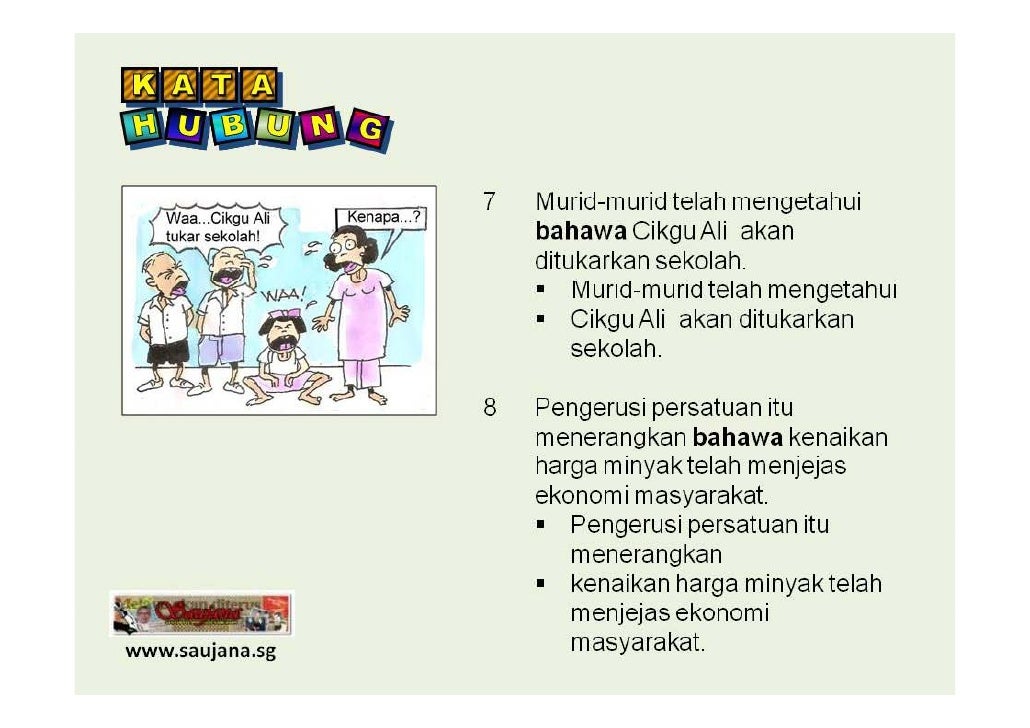 Ada 15 jenis kata hubung yang perlu diketahui. Menurut tatabahasa dewan edisi baharu (nik safiah karim et. Kata penghuubung or atau yang berarti atau digunakan untuk menunjukkan bahwa hanya satu kemungkinan dapat direalisasikan, termasuk c. April 16, 2015, 1:46 a.m. Kata hubung pancangan keterangan menghubungkan klausa keterangan kepada klausa utama. 241), kata hubung, pancangan komplemen berfungsi menghubungkan satu klausa yang menjadi komplemen atau. Kata hubung pancangan relatif ialah kata yang bertugas sebagai penghubung klausa utama dengan klausa yang kecil. Once your powtoon is ready to be downloaded we'll send you an email. Kata hubung menjadi salah satu modal dalam menulis. Siri aplikasi ini mengandungi isi pelajaran tentang konsep kata hubung dan penggolongannya. Live worksheets > malay > bahasa melayu (bm) > tatabahasa > kata hubung pancangan relatif & komplemen. Isikan tempat kosong dengan kata hubung pancangan keterangan yang telah dipelajari secara lisan. Murid akan mempelajari kata hubung pancangan keterangan, pancangan komplemen, pancangan relatif dan kata hubung berpasangan.