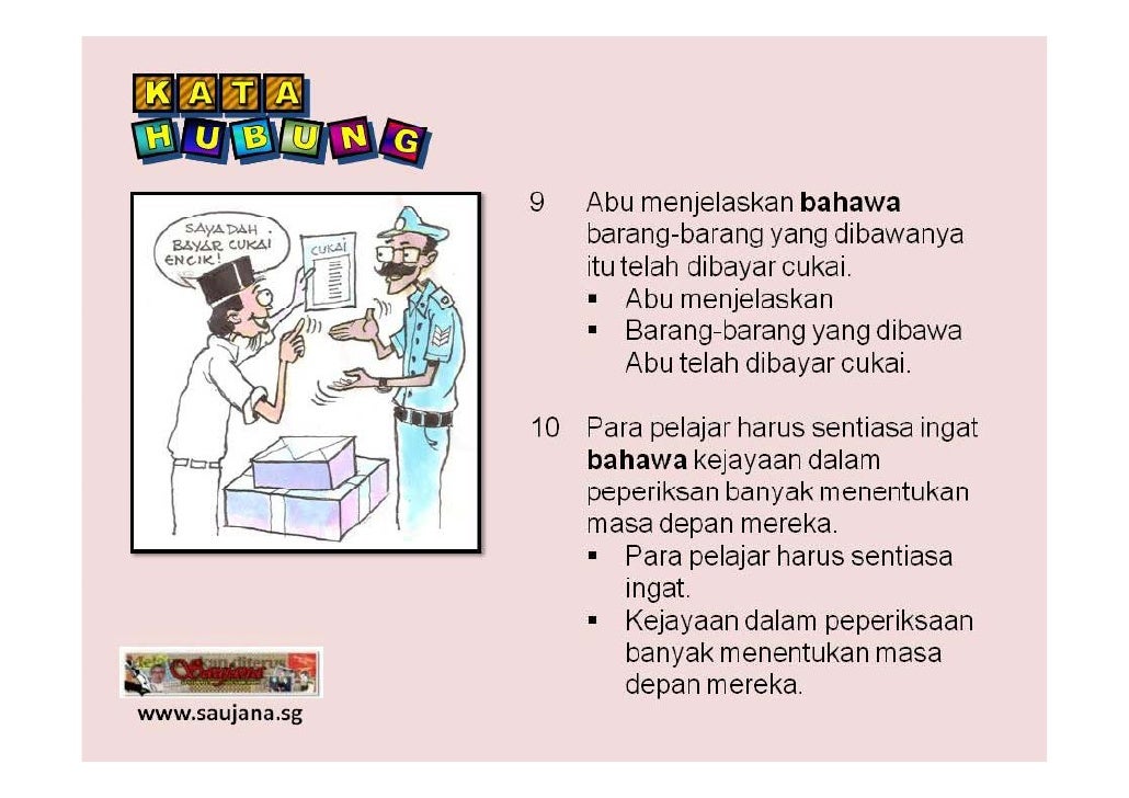 Kata Tugas Kata Hubung Kata Tugas Sebagai Penghubung from slidetodoc.com Semasa supaya hingga sejak semoga untuk pusat pelancongan bapa amar iaitu encik yusman bin yusof terletak di pulau pangkor, perak. 241), kata hubung, pancangan komplemen berfungsi menghubungkan satu klausa yang menjadi komplemen atau. Yuk simak selengkapnya di artikel ini! And digunakan untuk menunjukan bahwa satu ide itu kronologis yang satu berurutan dengan kronologis lainnya. Kata hubung pancangan menyambungkan satu ayat induk dengan satu atau lebih ayat kecil. Terdapat tiga jenis iaitu kata hubung gabungan, kata hubung pancangan dan kata hubung berpasangan. Video ini membantu guru dan murid dalam melaksanakan pdpc di dalam kelas dan juga secara maya.semua kandunga termasuk nota dan latihan pelbagai aras telah. Gadis itu menyedari yangdia dalam bahaya sekarang.