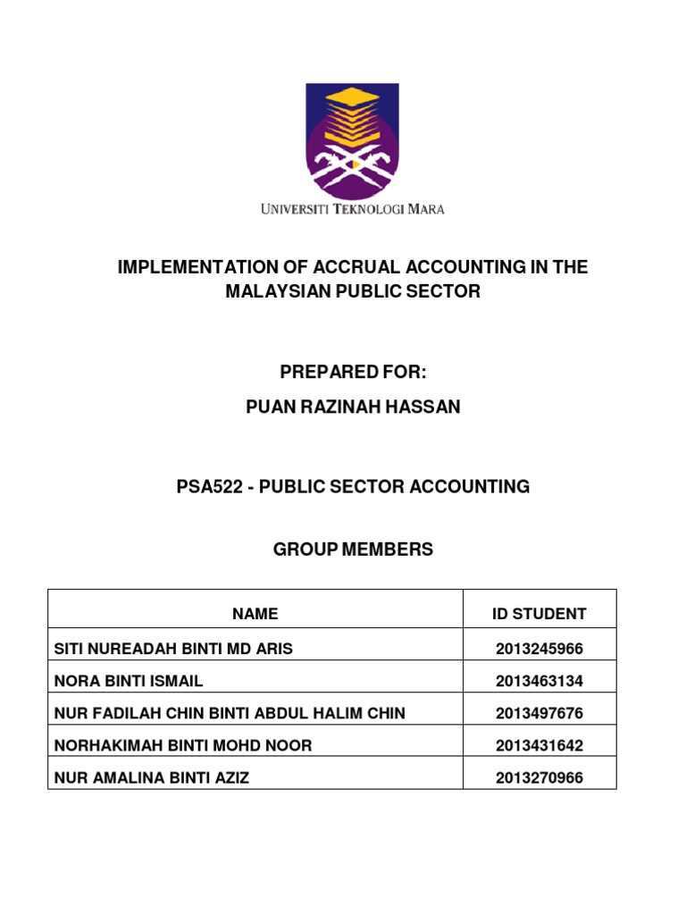 The agd develops and issues the following publications: For malaysia, it is expected to take five years for the full implementation of accrual accounting 7. Change management and training activities are also in progress. The government is committed to adopt greater transparency in public finance reporting by accelerating the full implementation of accrual accounting. Introduction while a malaysian corporate sector is busy to adopt international financial reporting standard (ifrs) as the standard in financial reporting, the same thing happened in the public sector. Malaysian public sector is in a way to change from cash accounting to accrual accounting starting 1 st january 2015. Mpsass as the standards to be applied in the preparation of general purpose financial reports of public sector entities other than government business enterprises (gbes). Investment appraisal in the public sector april 16, 2021; What is public sector accounting june 4, 2021; Public sector accrual accounting conversion. Identifying gaps and opportunities nur barizah abu bakar* zakiah saleh# *department of accounting, faculty of economics & management sciences, international islamic university malaysia, po box 10, jalan gombak, 50728, kuala lumpur. Pdf public sector accounting research in malaysia identifying gaps and opportunities zakiah saleh academia edu. Haque 2000), as a result of the npm surrounding the public sector both in the international and local context.